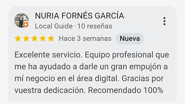 ✓ Presencia profesional en Google Maps:Creamos o mejoramos tu ficha de Google Business para que tu negocio aparezca correctamente en las búsquedas y en Google Maps. Tus clientes te encontrarán fácil y con buena impresión desde el primer vistazo.✓ Web tipo escaparate incluida:Incluimos una página web sencilla y profesional, si lo precisas, integrada en tu ficha. Mostrará tus datos clave, servicios principales, fotos, ubicación, formulario de contacto y llamada directa.✓ Fotos, textos y datos optimizados:Nos encargamos de subir y configurar todo: fotos del negocio, horarios, teléfono, enlaces y una descripción optimizada que aumente tu visibilidad local.✓ Gestión de reseñas durante 12 meses:Durante un año completo, gestionamos por ti las reseñas: respondemos a tus clientes, cuidamos tu reputación online y fomentamos opiniones positivas.✓ Aumento de visibilidad local:Con toda la ficha optimizada, aumentamos tu posición en las búsquedas de Google para que te encuentren más fácilmente en tu zona o sector.✓ Servicio completo, sin esfuerzo para ti:Nosotros lo activamos y lo gestionamos todo por ti. No tienes que hacer nada, solo elegir este servicio con tu Kit Digital.✓ 12 meses incluidos. Después, todo es 100 % tuyo:Este servicio cubre 12 meses completos de configuración y gestión profesional. Pasado ese tiempo, tú decides: puedes seguir gestionándola tú mismo, contratar a una agencia o dejarla activa sin cambios. La ficha te pertenece al 100 %.